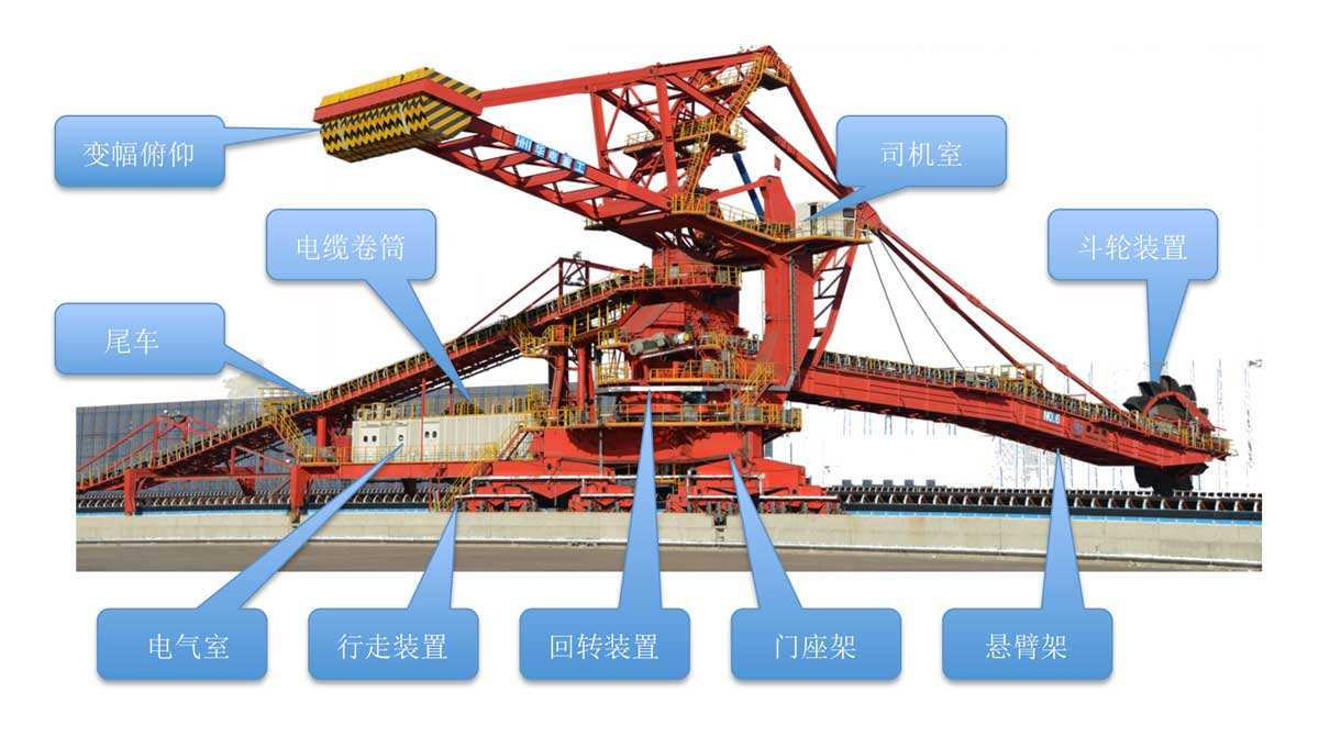 鬥輪堆取料機 簡介 利用(yòng)鬥輪連續取料,用機上的帶式輸送機連續(xù)堆料的有軌式裝卸機(jī)械。它是散狀物料(散料)儲料場內的專用機械,是在鬥輪挖(wā)掘機的基礎上演變而來的,可與卸車(船)機、帶式輸送(sòng)機、裝船(車)機組成儲(chǔ)料場運輸機械化係統,生產能力每小時可達1萬多噸。鬥輪堆取料機的作業有很強的規律性,易實現自動化。控(kòng)製